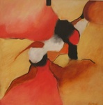 Het schilderen van abstracten is voor mij naast het figuratief schilderen een voortdurend experiment. Zoeken naar nieuwe vormen, ondergronden, kleuren en -combinaties en vooral het direct herkenbare vermijden, is voor mij iets geweldigs.